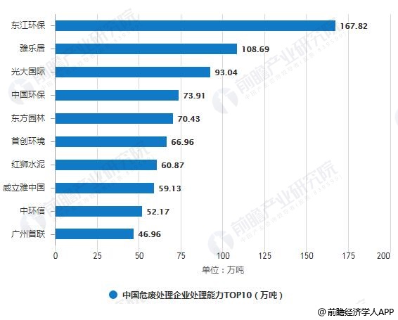 2018年中國(guó)危廢處理企業(yè)處理能力TOP10統(tǒng)計(jì)情況