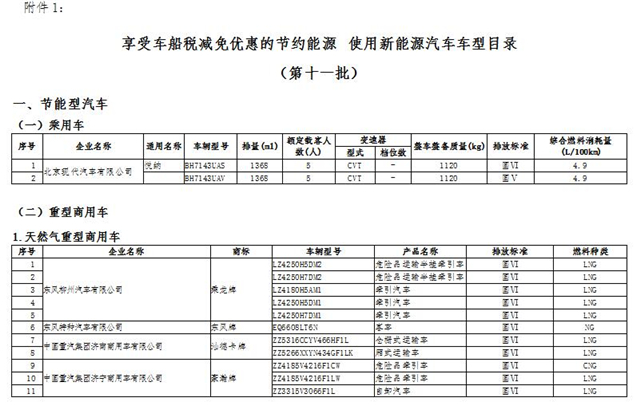 關(guān)于對(duì)《享受車船稅減免優(yōu)惠的節(jié)約能源 使用新能源汽車車型目錄》(第十一批)的公示
