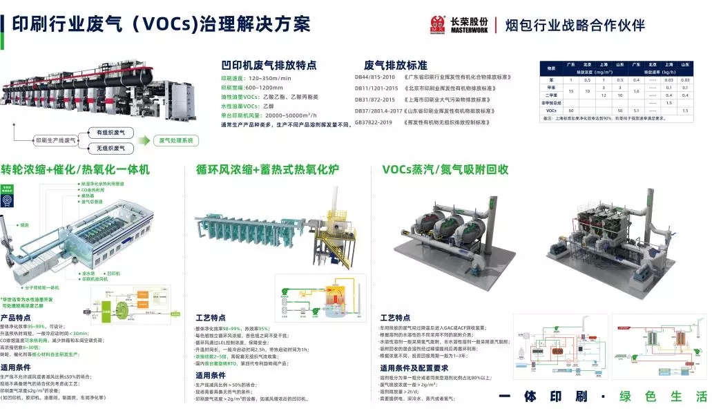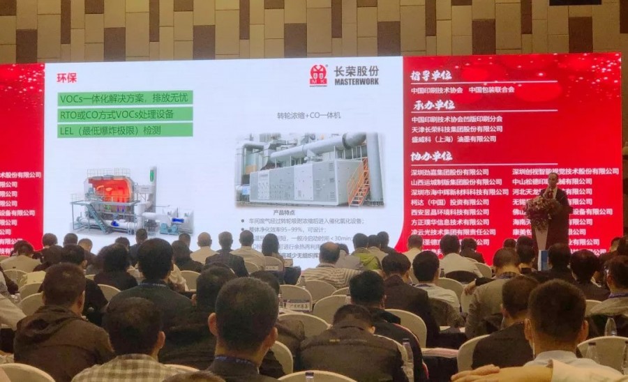 會議上長榮股份王總在講述“長榮股份煙包印刷解決方案”時(shí),提到了備受煙包印刷行業(yè)重視的環(huán)保治理問題,并介紹其煙包印刷VOCs治理采用了華世潔自主研發(fā)的分子篩轉(zhuǎn)輪一體機(jī),具有“設(shè)備價(jià)格低、運(yùn)行費(fèi)用少、凈化效率高、安全性能好”的優(yōu)勢。