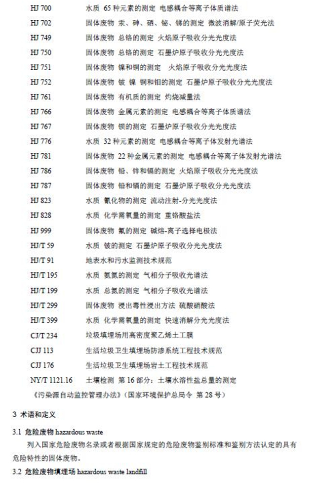 危險(xiǎn)廢物填埋污染控制標(biāo)準(zhǔn)(GB 18598-2019)。