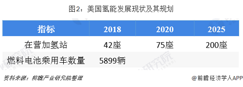 美國是最早將氫能及燃料電池作為能源戰(zhàn)略的國家。早在1970年便提出“氫經(jīng)濟(jì)”概念,并出臺(1990年氫研究、開發(fā)及示范法案》。布什政府提出氫經(jīng)濟(jì)發(fā)展藍(lán)圖,奧巴馬政府發(fā)布《全面能源戰(zhàn)略》,特朗普政府將氫能和燃料電池作為美國優(yōu)先能源戰(zhàn)略,開展前沿技術(shù)研究。2018年,美國宣布10月8日為美國國家氫能與燃料電池紀(jì)念日美國政府對氫能和燃料電池給予了持續(xù)支持,近十年的支持規(guī)模超過16億美元,并積極為氫能基礎(chǔ)設(shè)施的建立和氫燃料的使用制定相關(guān)財政支持標(biāo)準(zhǔn)和減免法規(guī)。2018年,美國通過兩黨預(yù)算法案,對固定式燃料電池發(fā)電和交通應(yīng)用燃料電池的聯(lián)邦商業(yè)投資繼續(xù)進(jìn)行稅收抵免。截至2018年底,美國在營加氫站42座,計劃2020年建成75座,2025年達(dá)到200座。燃料電池乘用車數(shù)量達(dá)到5899輛。全年固定式燃料電池安裝超過100兆瓦,累計固定式燃料電池安裝超過500兆瓦。