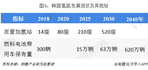 截至2018年底,韓國在營加氫站14座,計劃2020年建成80座,2025年達(dá)到210座,2030年達(dá)到520座。燃料電池乘用車保有約300輛,計劃保有量2025年15萬輛、2030年63萬輛,到2040年分階段生產(chǎn)620萬輛。