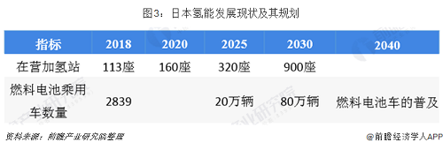 截至2018年底,日本在營加氫站113座,計劃2020年建成160座,2025年建成320座,2030年達(dá)到900座。燃料電池采用車保有量達(dá)到2839輛,計劃保有量2025年20萬輛,2030年80萬輛,2040年實現(xiàn)燃料電池車的普及