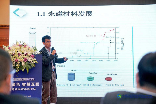 沈陽(yáng)工業(yè)大學(xué)張炳義教授發(fā)表了《稀土永磁電機(jī)直驅(qū)系統(tǒng)的趨勢(shì)》演講。