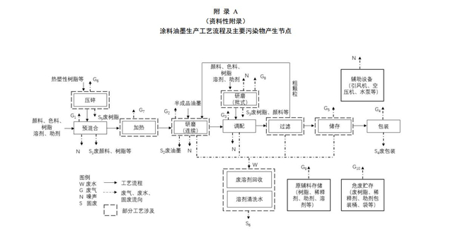 原輔料和危險(xiǎn)廢物貯存。顆粒物主要產(chǎn)生于固體原輔料的投料、預(yù)混合、研磨、調(diào)配和過濾工序。涂料油墨不同生產(chǎn)工藝類型單位產(chǎn)品VOCs 基準(zhǔn)產(chǎn)生量及產(chǎn)生濃度水平見附錄B,涂料油墨生產(chǎn)企業(yè)應(yīng)優(yōu)先控制的大氣有機(jī)污染物見附錄C。