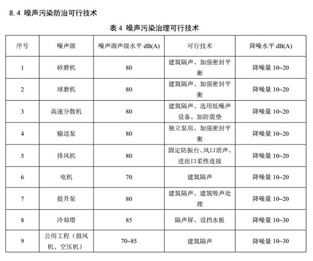 4.2.1.4 涂料工業(yè)企業(yè)產(chǎn)生的噪聲主要來自于生產(chǎn)過程中使用的生產(chǎn)設(shè)備(如砂磨機(jī)、球磨機(jī)、高速分散機(jī)、輸送泵等)和輔助生產(chǎn)設(shè)備(如排風(fēng)機(jī)、電機(jī)、提升泵、鼓風(fēng)機(jī)、空壓機(jī)等)運(yùn)行。