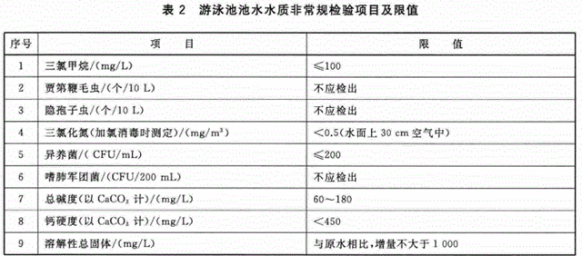 眾所周知,我國在2007年就發(fā)布了游泳池水質標準(CJ/T—2007),隨后經過修訂,被游泳池水質標準(CJ/T—2016)。增加水質常規(guī)檢驗、非常規(guī)檢驗等6個術語和定義;增加了異養(yǎng)菌等8項非常規(guī)檢驗項目及限值和檢驗方法;修改了渾濁度、PH值、菌落總數、總大腸菌群等項目限值等。