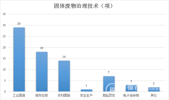 縱觀國家生態(tài)環(huán)境科技成果轉(zhuǎn)化綜合服務(wù)平臺(tái),展示的固體廢物處理處置技術(shù)共166項(xiàng),其中治理技術(shù)如下圖所示: