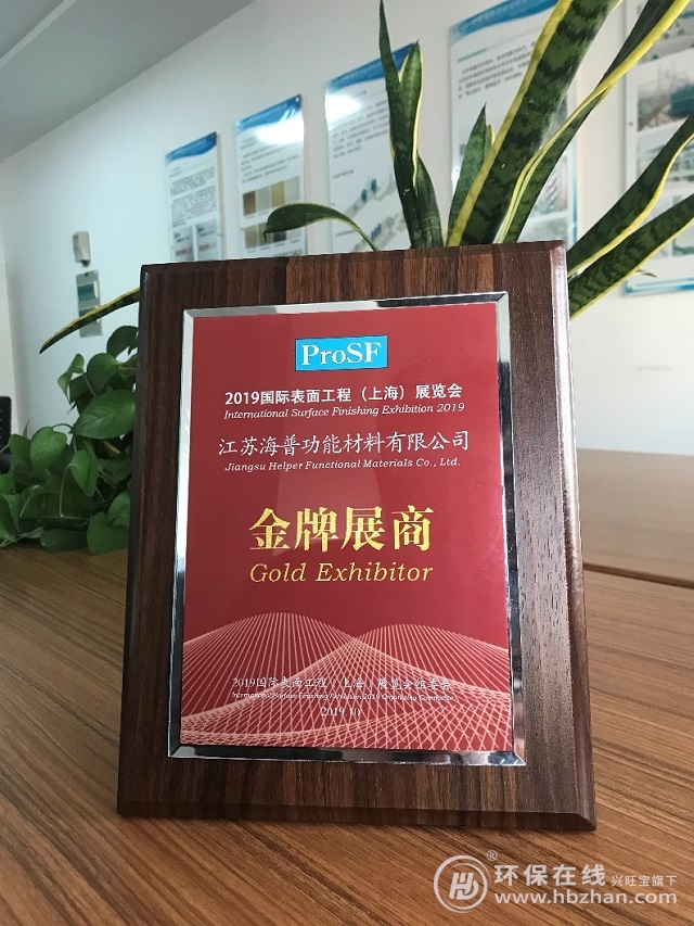 江蘇海普的特種吸附材料和電鍍廢水處理技術(shù)在展會(huì)上吸引了許多電鍍相關(guān)環(huán)保需求企業(yè)的駐足,而海普也榮獲了組委會(huì)頒發(fā)的“金牌展商”榮譽(yù)稱(chēng)號(hào)。