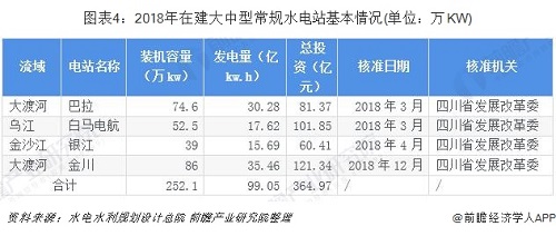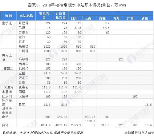 2018年核準(zhǔn)常規(guī)水電站裝機(jī)容量達(dá)到4854.9萬kW,在建裝機(jī)容量達(dá)到4802.15萬kW,其中四川省最多,常規(guī)水電站裝機(jī)容量達(dá)到2553.9萬kW。