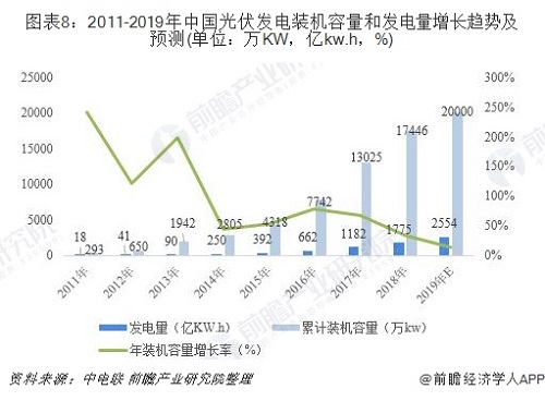 4、截止2019年年底,光伏累計裝機(jī)容量將達(dá)2.0億kW