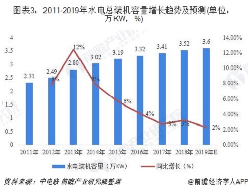 2、截止2019年年底,中國水電總裝機(jī)容量將達(dá)3.6億kW