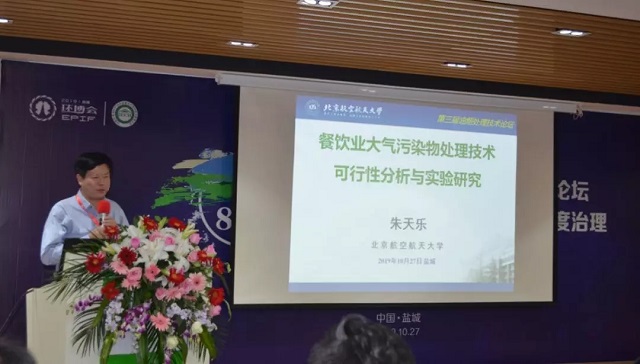北京航空航天大學(xué)朱天樂教授分享了解決餐飲業(yè)大氣污染物用到的靜電、濕式、機(jī)械、低溫等離子體、光解催化等處理技術(shù)的分析和效果對(duì)比,以實(shí)驗(yàn)研究數(shù)據(jù)為依據(jù),對(duì)雙區(qū)式靜電凈化技術(shù)、交替吸附/低溫等離子體強(qiáng)化催化技術(shù)做了深入探討。
