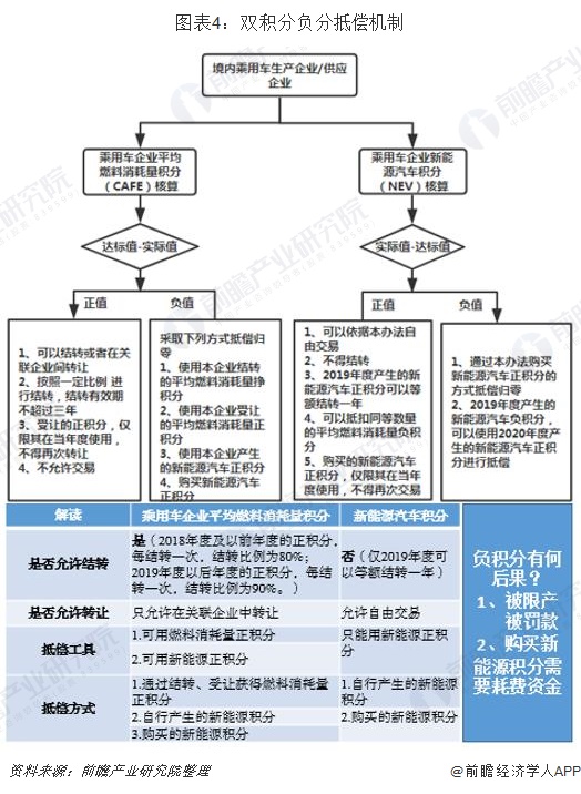 為了避免處罰措施,對于乘用車企業(yè)平均燃料消耗量積分來說,抵償負(fù)分有三個途徑:結(jié)轉(zhuǎn)、受讓燃料消耗量正積分、購買新能源積分、自行產(chǎn)生新能源積分;同樣,對于新能源汽車積分來說,抵償負(fù)分有兩個途徑:購買新能源積分或是自行產(chǎn)生新能源積分。