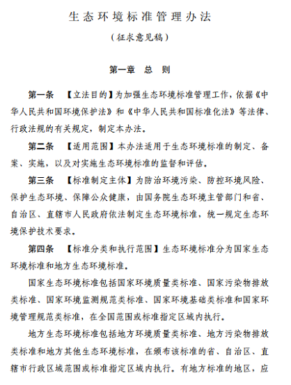 日前,生態(tài)環(huán)境部發(fā)布關(guān)于征求《生態(tài)環(huán)境標(biāo)準(zhǔn)管理辦法(征求意見稿)》和《國家生態(tài)環(huán)境標(biāo)準(zhǔn)制修訂工作管理辦法(征求意見稿)》意見的函,詳情如下: