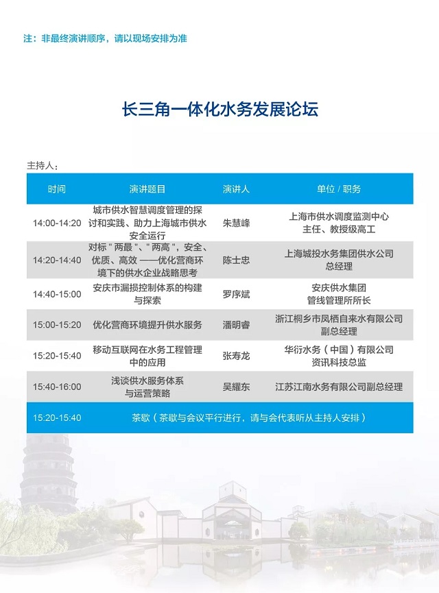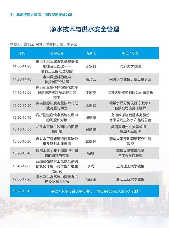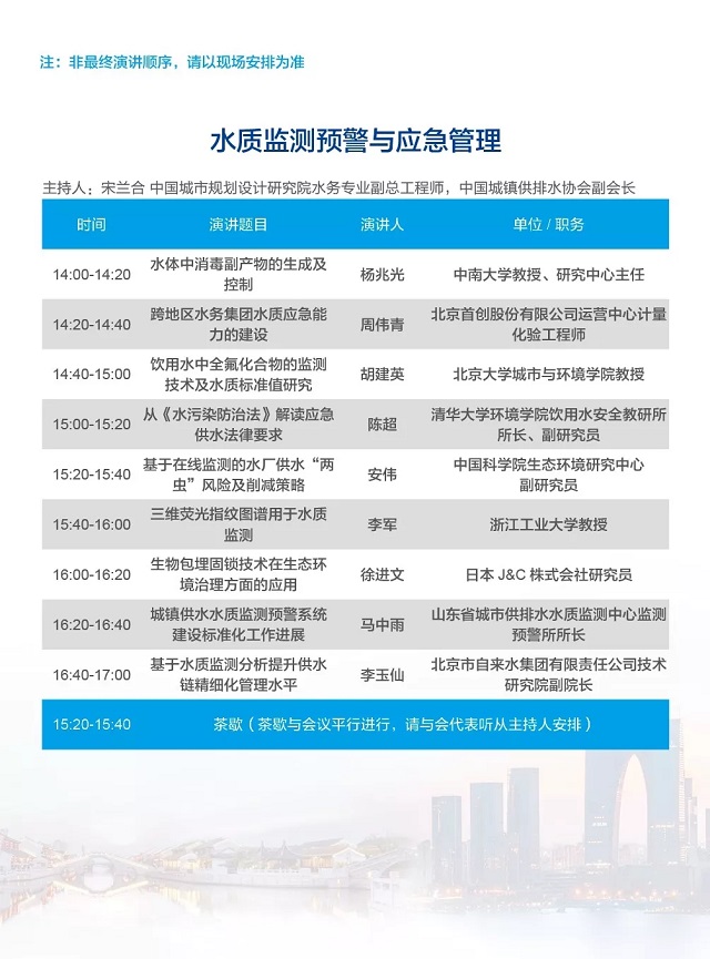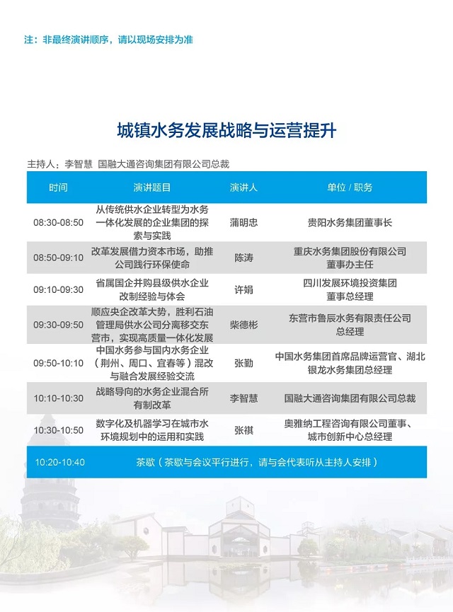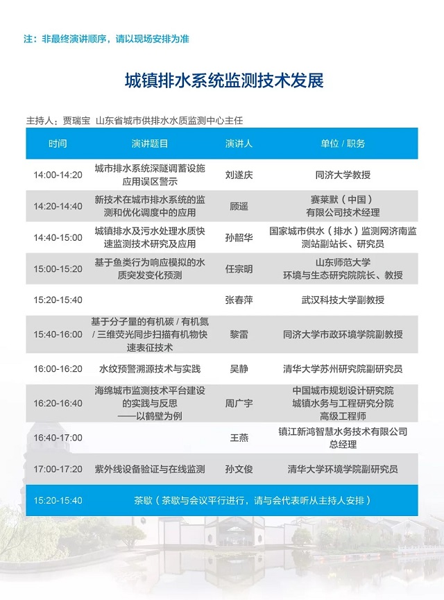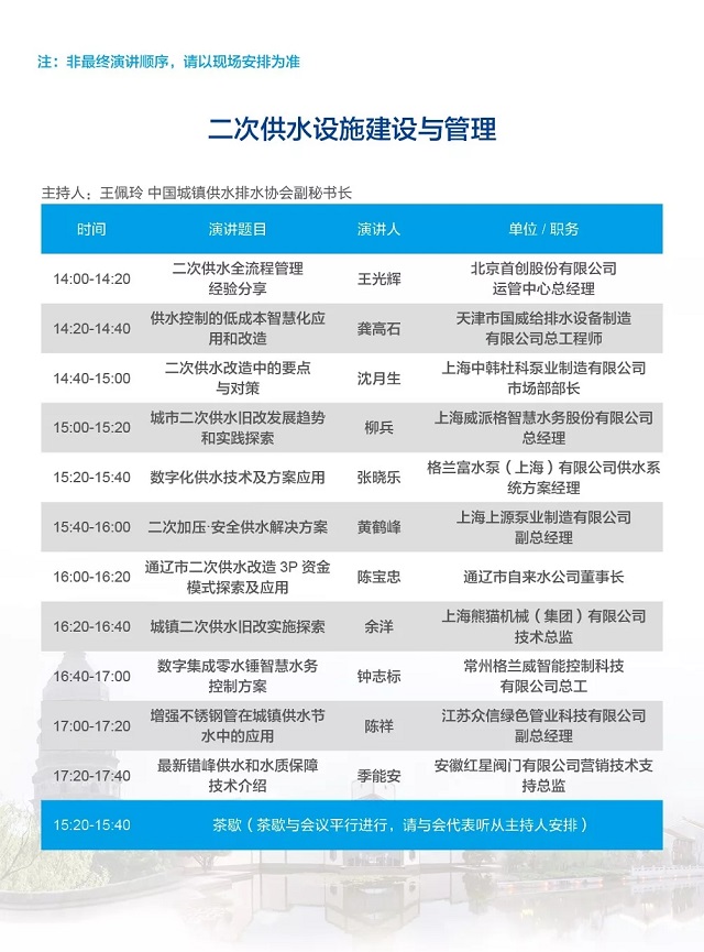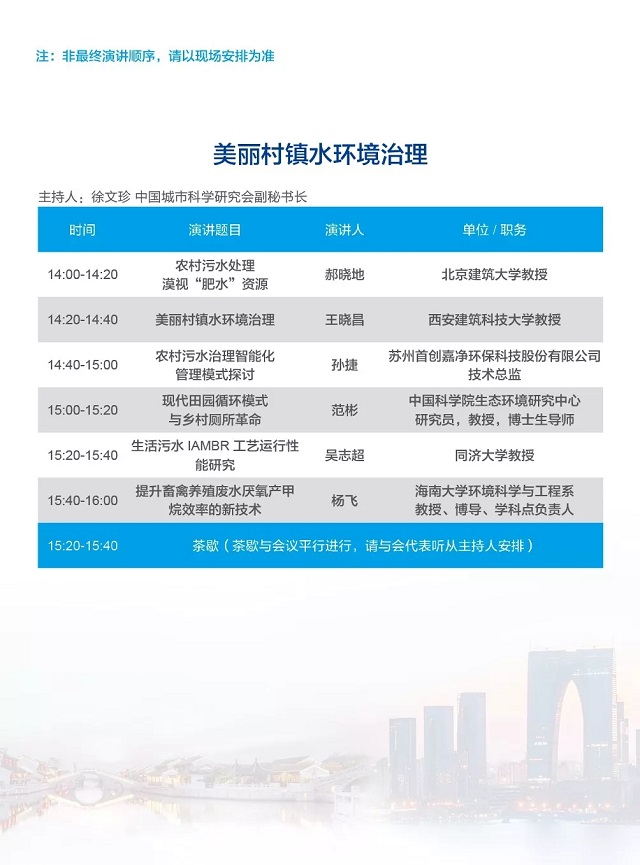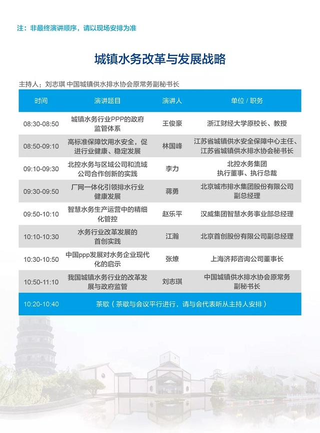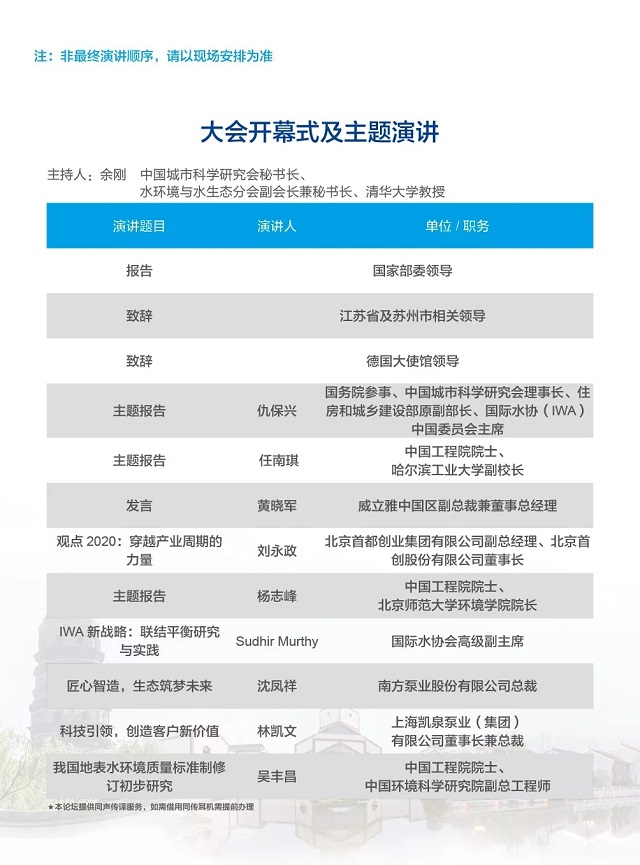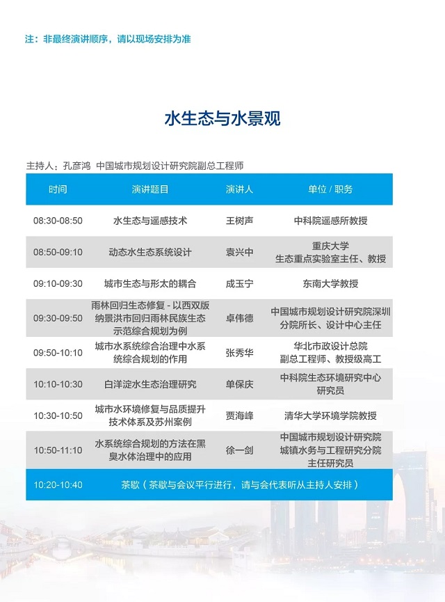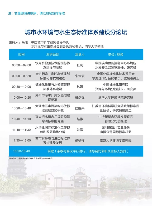 除以上分論壇外,蘇州論壇——高品質(zhì)水公共產(chǎn)品研討會(huì)建筑節(jié)水論壇、城鎮(zhèn)水環(huán)境綜合整治與管理、中-法水務(wù)科技論壇等論壇議程正在確認(rèn)中……敬請(qǐng)期待!