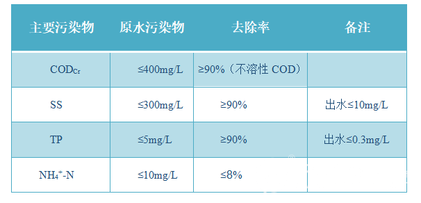 誠(chéng)如磁分離水體凈化工藝首先通過(guò)截留設(shè)施的格柵攔截較大的垃圾和污物,對(duì)污水進(jìn)行預(yù)處理。在初步降低污水中的無(wú)機(jī)顆粒物質(zhì)含量后,通過(guò)加磁混合反應(yīng)和磁分離系統(tǒng)以期同步實(shí)現(xiàn)快速去除水中SS、降低水中TP和不溶性COD含量,直至出水經(jīng)過(guò)后端處理向外排放。主要污染物去除效果參考下圖: