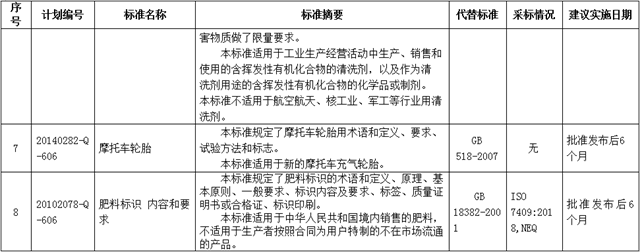 8項化工行業(yè)強制性國家標準主要內容等一覽表