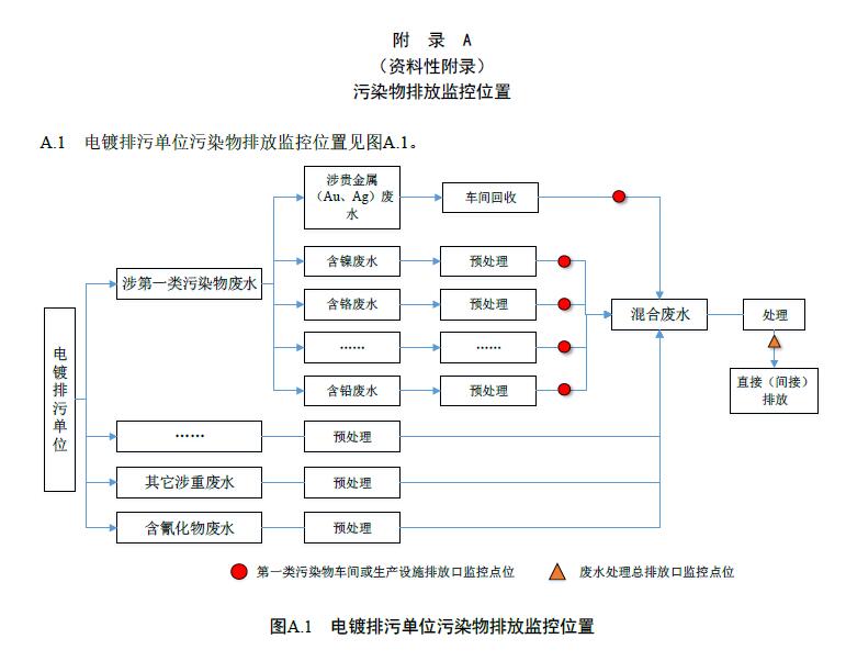 6.1.1 電鍍排污單位和專門處理電鍍廢水的集中式污水處理廠應(yīng)按照環(huán)境監(jiān)測管理規(guī)定和技術(shù)規(guī)范的要求,設(shè)計(jì)、建設(shè)、維護(hù)永久性采樣口、采樣測試平臺(tái)和排污口標(biāo)志。