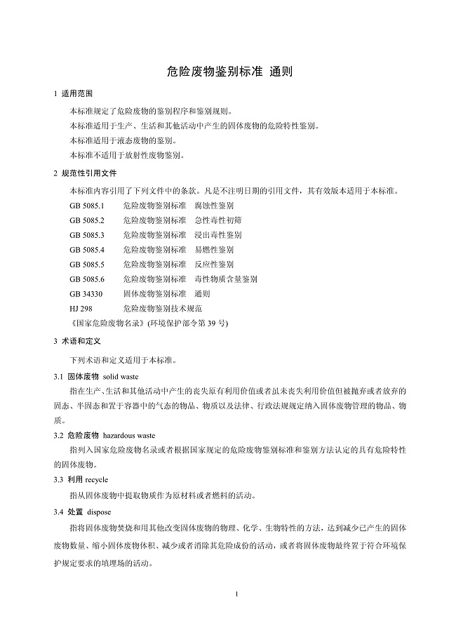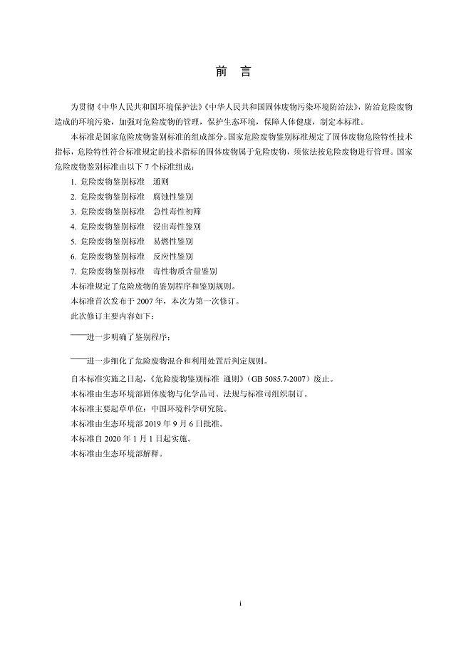 以上標準自2020年1月1日起實施,自實施之日起,《危險廢物鑒別標準 通則》(GB 5085.7-2007)廢止。