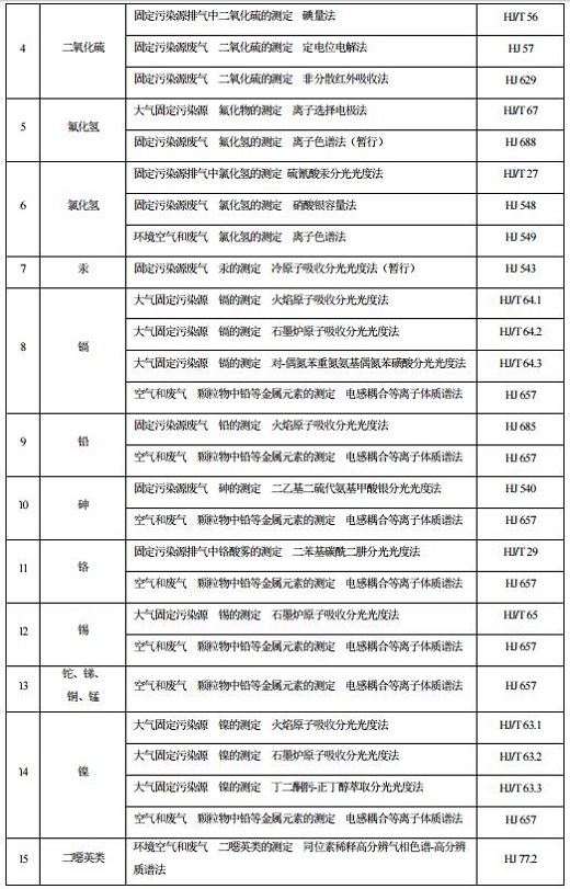8.2.4 大氣污染物濃度監(jiān)測時的測定方法采用表5所列的方法標準。本標準實施后國家發(fā)布的污染物監(jiān)測方法標準,如適用性滿足要求,同樣適用于本標準相應污染物的測定。