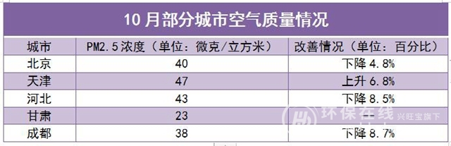除此之外,全國多個地方的空氣質(zhì)量也取得了明顯的改善,尤其是像北京、天津和河北等城市,秋冬大氣污染治理首月進(jìn)展也比較順利,具體如下: