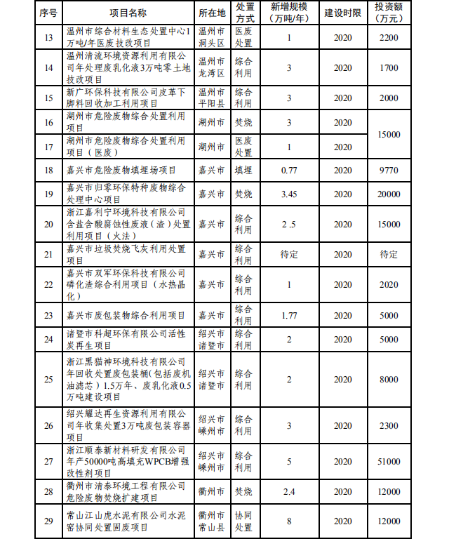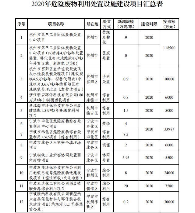 附2020年危險廢物利用處置設(shè)施建設(shè)項目匯總表