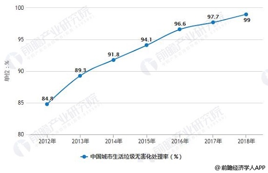 2012-2018年中國城市生活垃圾無害化處理率統(tǒng)計情況