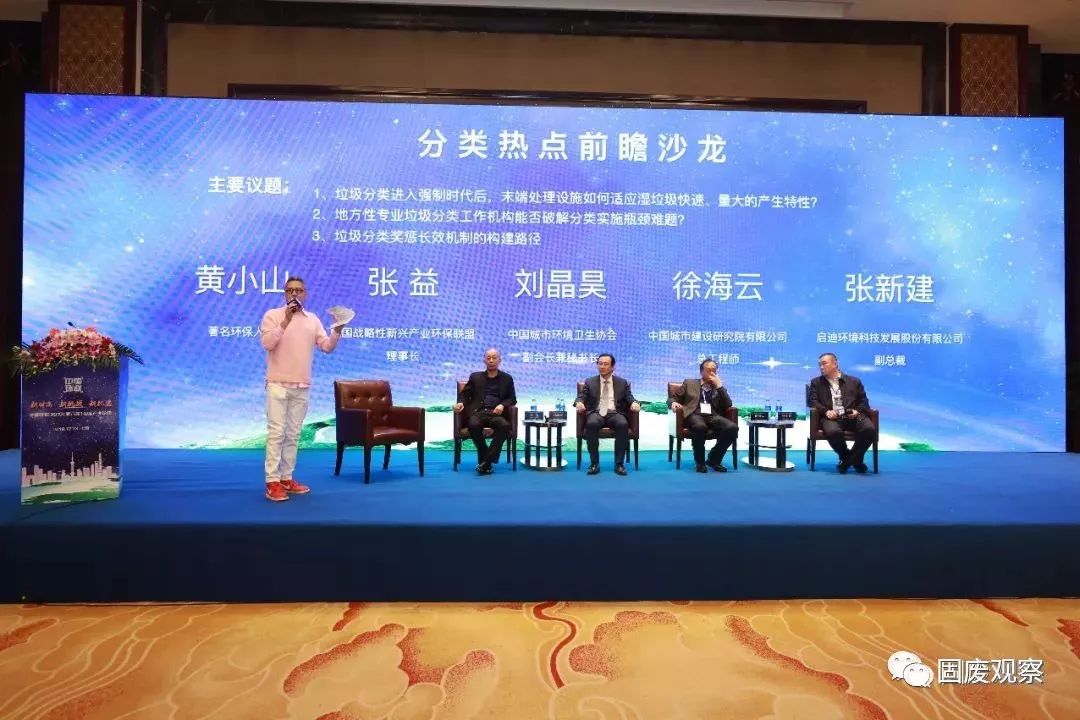 在分類熱點前瞻沙龍環(huán)節(jié),中國戰(zhàn)略性新興產(chǎn)業(yè)環(huán)保聯(lián)盟理事長張益、中國城市環(huán)境衛(wèi)生協(xié)會副會長兼秘書長劉晶昊、中國城市建設研究院有限公司總工程師徐海云、啟迪環(huán)境科技發(fā)展股份有限公司副總裁張新建針對垃圾分類趨勢、經(jīng)濟投入、廚余垃圾設施匹配性、廚余垃圾技術路線等熱點進行了分享和探討。