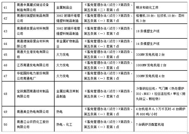 南通市2019-2020年秋冬季錯峰生產(chǎn)及重污染天氣應急管控停限產(chǎn)豁免名單