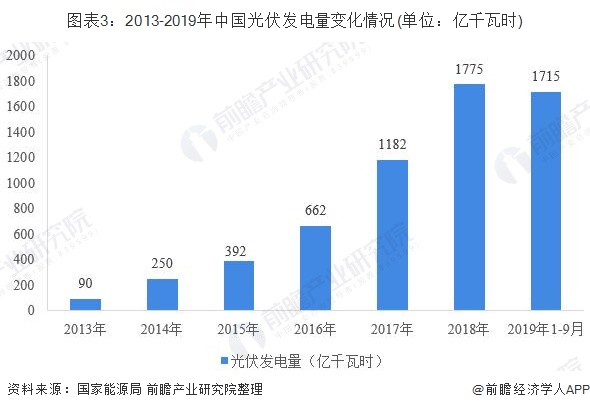 據(jù)國家能源局統(tǒng)計(jì)數(shù)據(jù)顯示,2013年以來,我國光伏發(fā)電量增長迅速。2013年,全國光伏發(fā)電量僅為90億千瓦時(shí),到2018年,全國光伏發(fā)電量1775億千瓦時(shí),同比增長50%;平均利用小時(shí)數(shù)1115小時(shí),同比增加37小時(shí)。光伏發(fā)電平均利用小時(shí)數(shù)較高的地區(qū)中,蒙西1617小時(shí)、蒙東1523小時(shí)、青海1460小時(shí)、四川1439小時(shí)。截至2019年9月底,全國光伏發(fā)電量為1715億千瓦時(shí)。