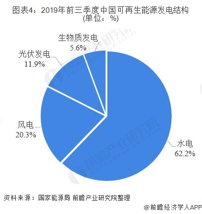 同其他類型可再生能源利用水平相比,目前,我國光伏發(fā)電規(guī)模仍低于水力發(fā)電和風(fēng)力發(fā)電。截至2019年9月底,全國可再生能源發(fā)電量達(dá)14371億千瓦時(shí),同比增長約11%。其中,水電8938億千瓦時(shí),同比增長7.9%,占總體的62.2%;風(fēng)電2914億千瓦時(shí),同比增長8.9%,占總體的20.3%;光伏發(fā)電1715億千瓦時(shí),同比增長28.1%,占總體的11.9%;生物質(zhì)發(fā)電804億千瓦時(shí),同比增長19.4%,占總體的5.6%。