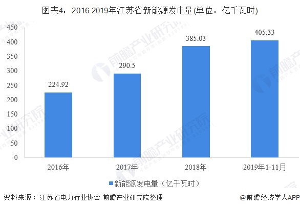 2019年1-11月份,江蘇全省發(fā)電量4605.06億千瓦時,其中新能源發(fā)電量405.33億千瓦時,占全省發(fā)電量的8.80%。