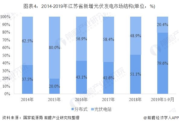 2019年江蘇省光伏發(fā)電行業(yè)發(fā)展現狀 分布式市場份額逐步提升