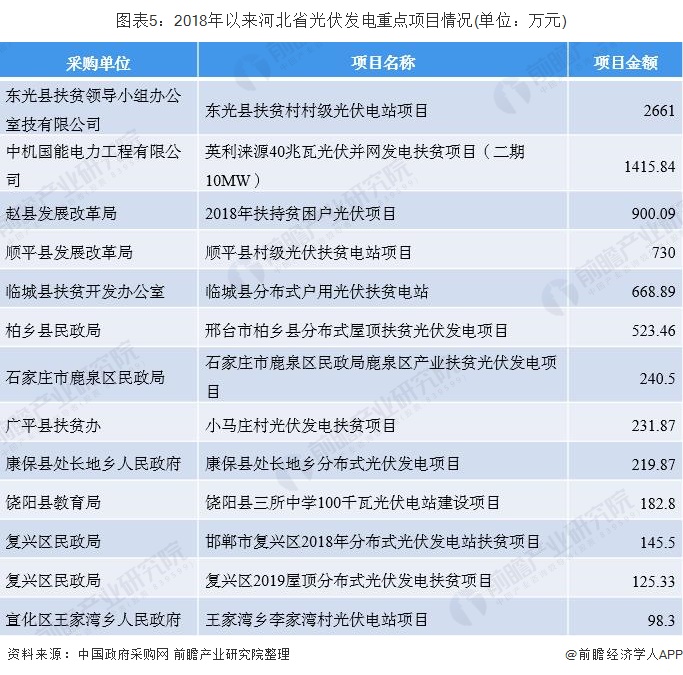 近年來,河北省依據(jù)國(guó)家光伏發(fā)電政策導(dǎo)向,并結(jié)合本省光伏發(fā)電發(fā)展現(xiàn)狀,穩(wěn)步推進(jìn)各地光伏發(fā)電項(xiàng)目,具體項(xiàng)目如下表所示: