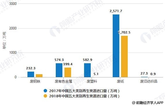 2017-2018年中國(guó)五大類別再生資源進(jìn)口量統(tǒng)計(jì)情況