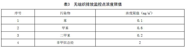 無組織排放監(jiān)控點濃度限值應(yīng)符合表3規(guī)定。