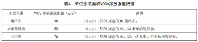 單位涂裝面積VOCs排放強度限值應(yīng)符合表4規(guī)定,計算方法按附錄A執(zhí)行,國家發(fā)布行業(yè)污染源源強核算標準后,依據(jù)國家源強核算標準進行核算。