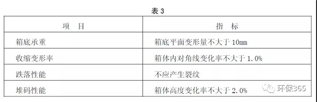 周轉(zhuǎn)箱物理機(jī)械性能應(yīng)符合表3規(guī)定。