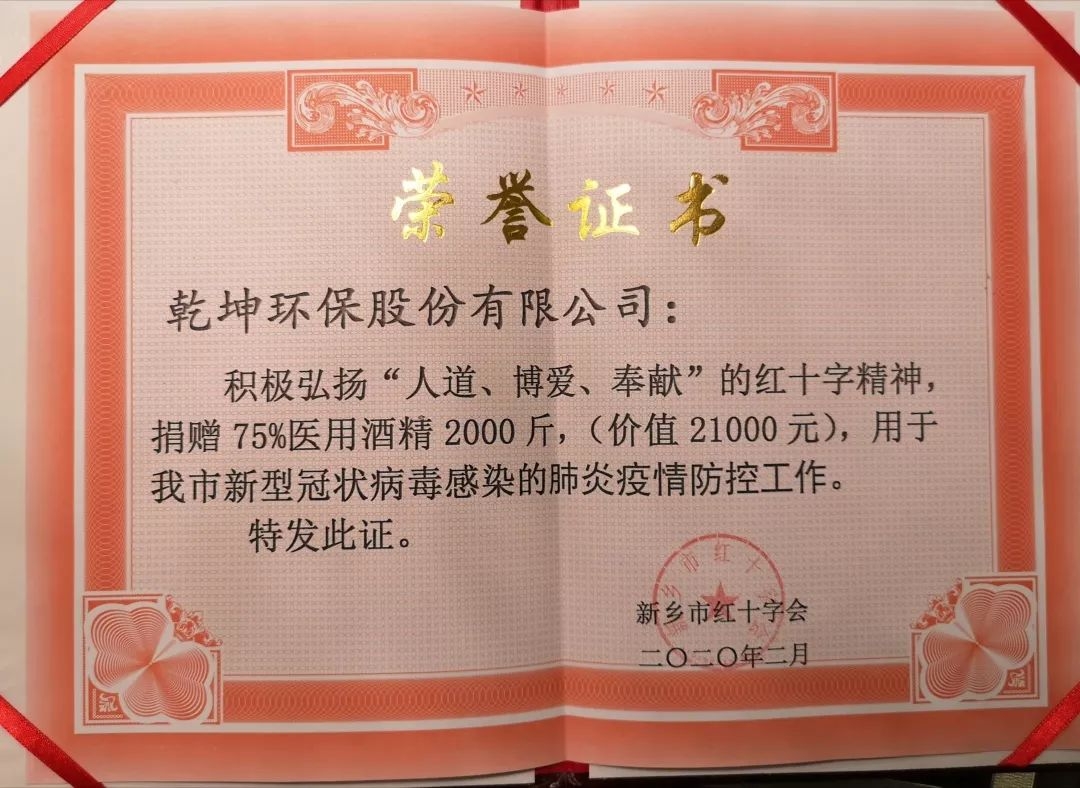 早在2020年1月27日,疫情開(kāi)始之初,乾坤環(huán)保就向河南省青少年發(fā)展基金會(huì)捐款5000元,用于馳援鄂豫、抗擊疫情。