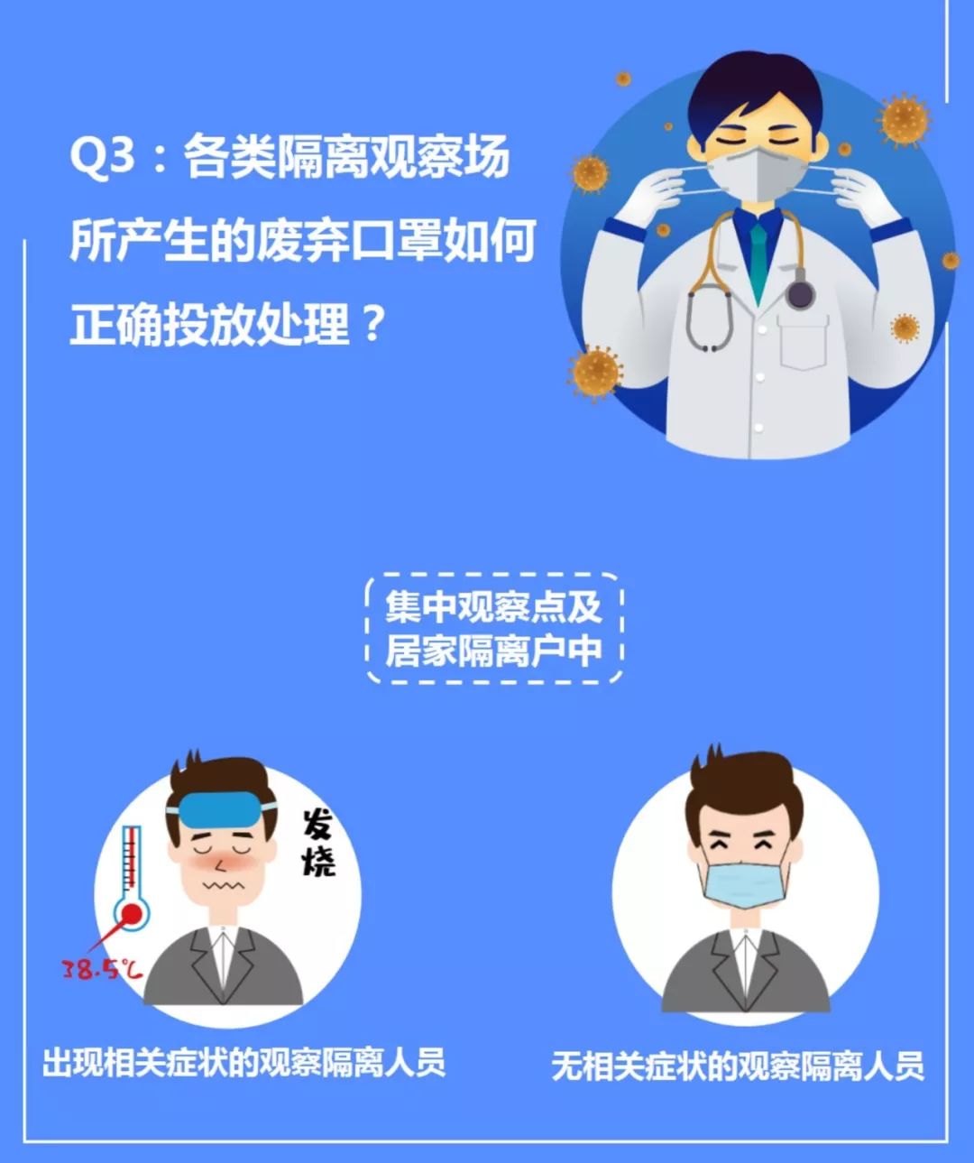 各居家隔離點(戶)、集中觀察點產(chǎn)生的廢棄口罩,應(yīng)嚴格按照上海市防控新型冠狀病毒感染肺炎疫情重點人員集中隔離觀察場所技術(shù)工作規(guī)范要求,由隔離牽頭部門負責(zé)指導(dǎo)屬地部門設(shè)立臨時存放點,與日常產(chǎn)生的生活垃圾予以專門存放。