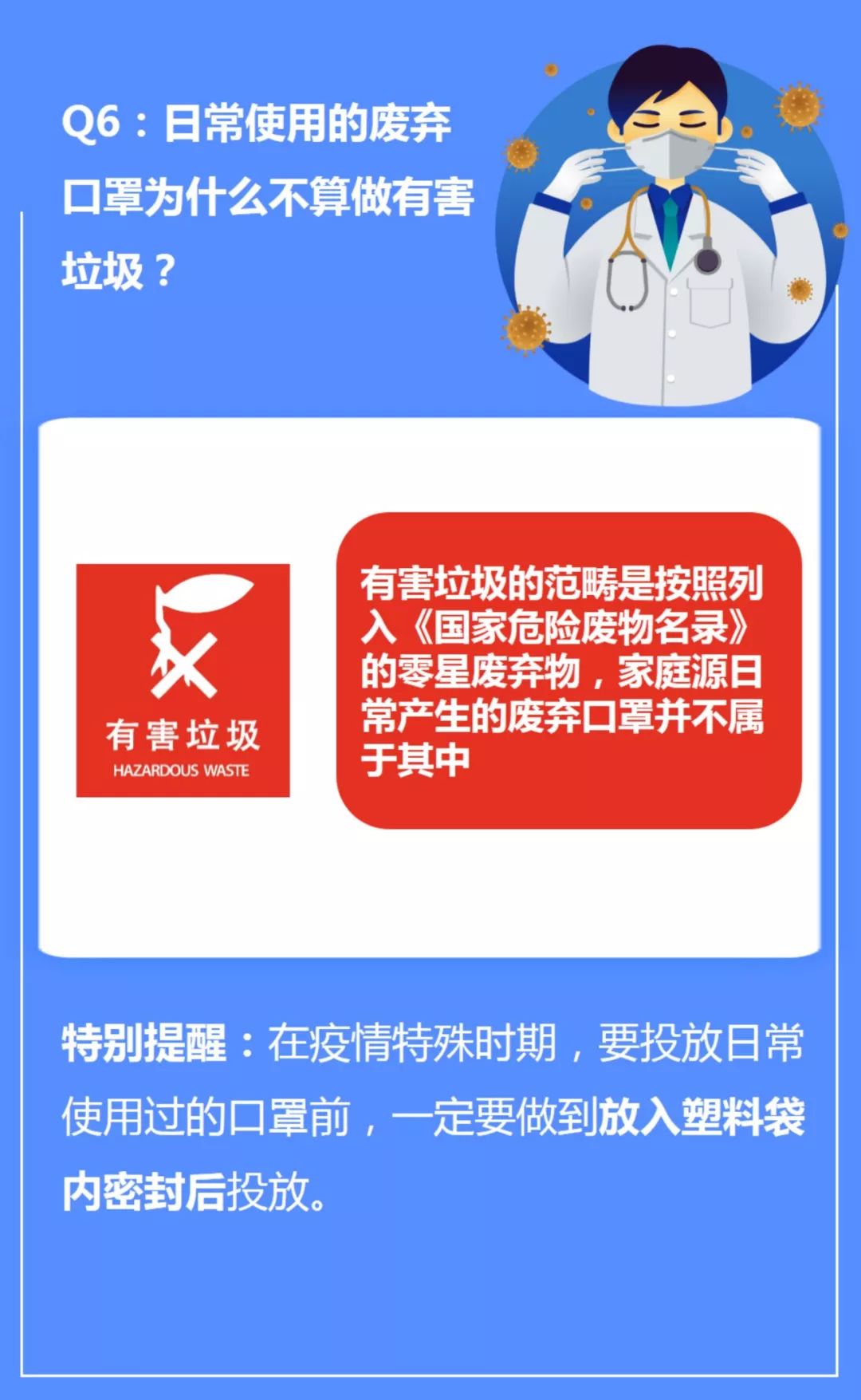 所以,為了減少作業(yè)人員和公眾的衛(wèi)生風(fēng)險,請將疫情期間日常產(chǎn)生廢棄的口罩使用塑料袋密封后,作為干垃圾進行投放。