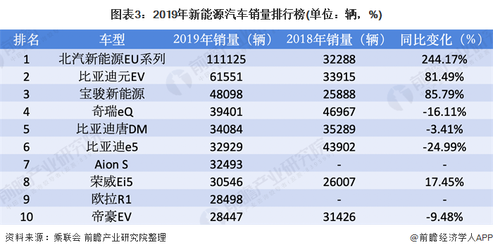 近日,乘聯(lián)會公布了2019年最后一個月以及全年的新能源汽車銷量。全年銷量依舊是北汽新能源EU系列領先,并與第二名拉開大差距。北汽新能源成功將主銷產(chǎn)品從略低的EC系列變成了EU系列, EU系列2019年銷量突破10萬輛,為11.1萬輛,較2018年增長244.17%。除了冠軍北汽EU系列,依靠去年上半年較好表現(xiàn)的比亞迪以6.2萬輛累計銷量緊隨其后。下半年上市廣汽新能源Aion S,最終也以3.2萬輛累計銷量進入累計榜單,也助廣汽新能源完成了4萬輛的年終銷量目標。