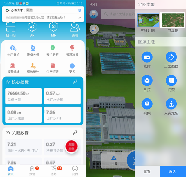 由于疫情防控需要,水廠運行值班人員需要實行封閉式管理。為了更好地減少運行人員與外界的接觸,光明水廠逐步推行“凌晨運行人員單人值守”方案,即由原來2人值班減少為1人,取消夜間巡檢;值班人員在中控室運用系統(tǒng)代替操作,用視頻巡檢代替人工巡檢,如有情況,安全預警及時自動報送。運行人員不在中控室的時候,也能夠通過手機APP端,實現(xiàn)對生產(chǎn)過程的全流程監(jiān)控,整個手機APP端變成了“口袋的中控室”。同時,智慧水廠運管平臺APP端讓管理人員在家就可以實時監(jiān)控生產(chǎn),并處理部分日常工作中的行政事務。該方案自春節(jié)假期實施以來,取得了良好效果,水廠生產(chǎn)平穩(wěn),水質達標。