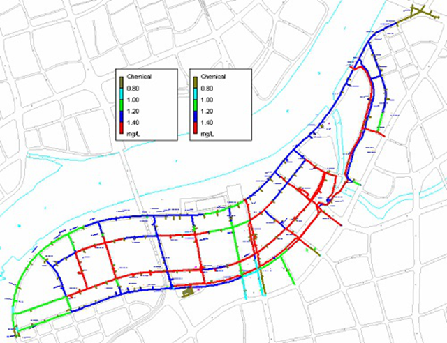 管網(wǎng)多級(jí)消毒、縱向水平衡漏損控制、管網(wǎng)水質(zhì)模擬等技術(shù),實(shí)現(xiàn)了管網(wǎng)水力水質(zhì)動(dòng)態(tài)模擬,為供水管網(wǎng)安全提供保障。團(tuán)隊(duì)還利用