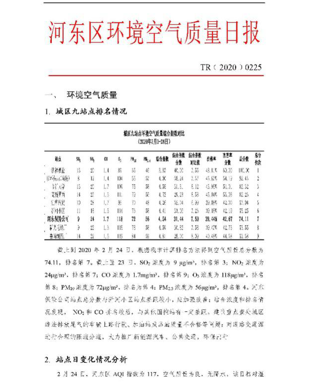在環(huán)境管理技術(shù)指導(dǎo)過程中,公司堅(jiān)持駐場人員指導(dǎo)服務(wù)+總部大數(shù)據(jù)分析支撐的雙管齊下服務(wù)模式,每日為臨沂市河?xùn)|區(qū)提供環(huán)境空氣質(zhì)量日報(bào),提供針對污染源排查的數(shù)據(jù)分析報(bào)告,如分析2020年春節(jié)前后機(jī)動車變化情況對國控站點(diǎn)的數(shù)據(jù)影響程度的“春節(jié)效應(yīng)”、“祭祀效應(yīng)”等。