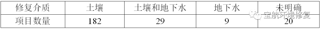 表3 不同修復(fù)介質(zhì)項(xiàng)目數(shù)量