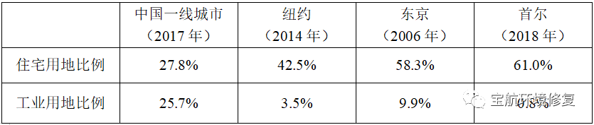 表4 中美日韓一線城市用地結(jié)構(gòu)差異