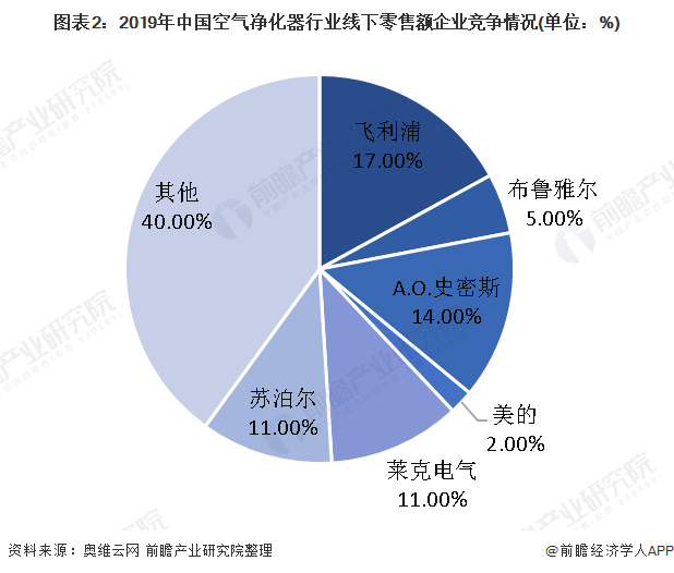 空氣凈化器行業(yè)競(jìng)爭(zhēng)較為激烈,2019年線下渠道零售中,飛利浦和史密斯占據(jù)較多的市場(chǎng)份額,分別為17%和14%,國(guó)內(nèi)品牌中美的和蘇泊爾線下渠道銷售占比分別為2%和11%,因此國(guó)內(nèi)品牌在線下渠道的占比小于國(guó)外品牌。