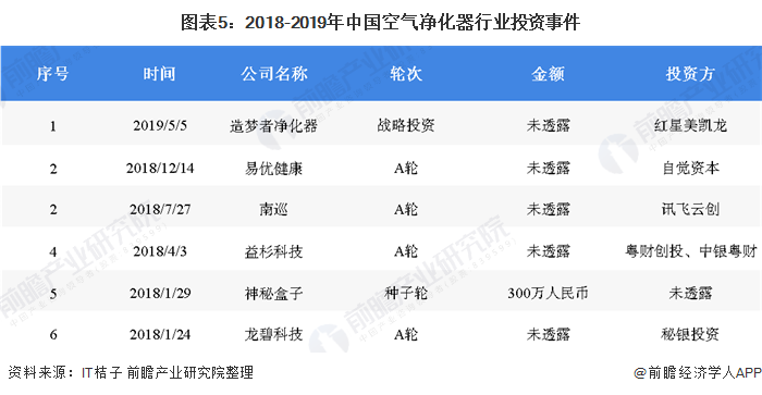 隨著空氣凈化器在最近幾年的投資熱情降溫,投資人對(duì)于空氣凈化器行業(yè)的投資也開(kāi)始有所減少。投資市場(chǎng)空氣凈化器相關(guān)投融資事件具體如下: